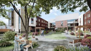 A modern 159,252 sq. ft. long-term care facility delivering household-style living, inviting community spaces, and advanced mechanical and electrical systems supporting WELL-oriented design.